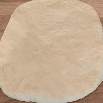 Once the dough is ready, take a ball about as large as your hand and roll it out onto a floured surface. You’re looking for 1/8th to 1/4 inch in thickness, depending on how much you want to be able to roll these up or if you’re using them as a substitute for flatbreads.