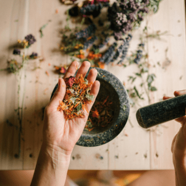 - When the leaves are dry, grind them either in a food processor or with a mortar and pestle.