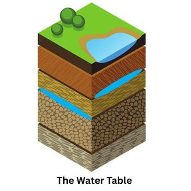 Soil is defined by layers sometimes referred to as strata. Somewhere below ground that strata captures water. The water table is where water pools and collects underground. Sometimes it’s above a layer of bedrock. At other times it can be above a layer of hard clay. How much water pools in those locations has a lot to do with the frequency of precipitation. In a drought many wells run dry. During seasons of average rainfall, the water table often maintains at its current level.