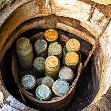 Pro Tip: If you don’t have space for a full cellar, a barrel or trash can be buried in the ground can function as a “mini cellar” for storing a smaller stash of food. Ideally, you want it buried with at least 2 to 3 feet of soil above the ceiling or lid to maximize the insulating qualities of the soil.