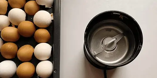 Put your eggshells in the coffee bean grinder and reduce them to a fine, almost ash-like consistency.