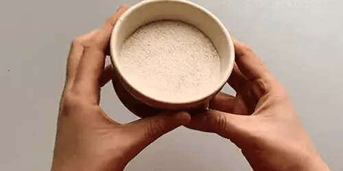 Add 2 tablespoons of ground eggshells to 2 tablespoons of white vinegar in a small bowl. It should froth pretty fast. Be aware that this smells a little strange but that you’ll get used to it quickly.