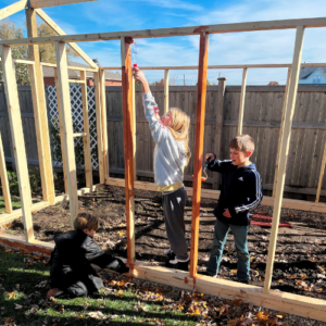 I built a greenhouse for my daughter and involved my grandkids every step of the way. They all had hammers and pounded most of the nails to build the framework. I did the sawing and measuring but told them all about “measure twice” and saw safety. They sealed and stained the entire framework, and the boys helped me build the door. When it was done, they all felt like they had built it and learned a lot about carpentry and construction.