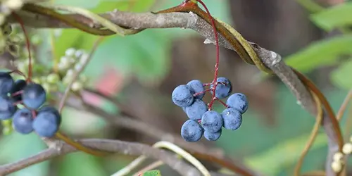 Common moonseed is a wild grape look-alike. The difference between the two is the moonseed contains one flat seed, and wild grapes have 1-4 pear-shaped seeds.